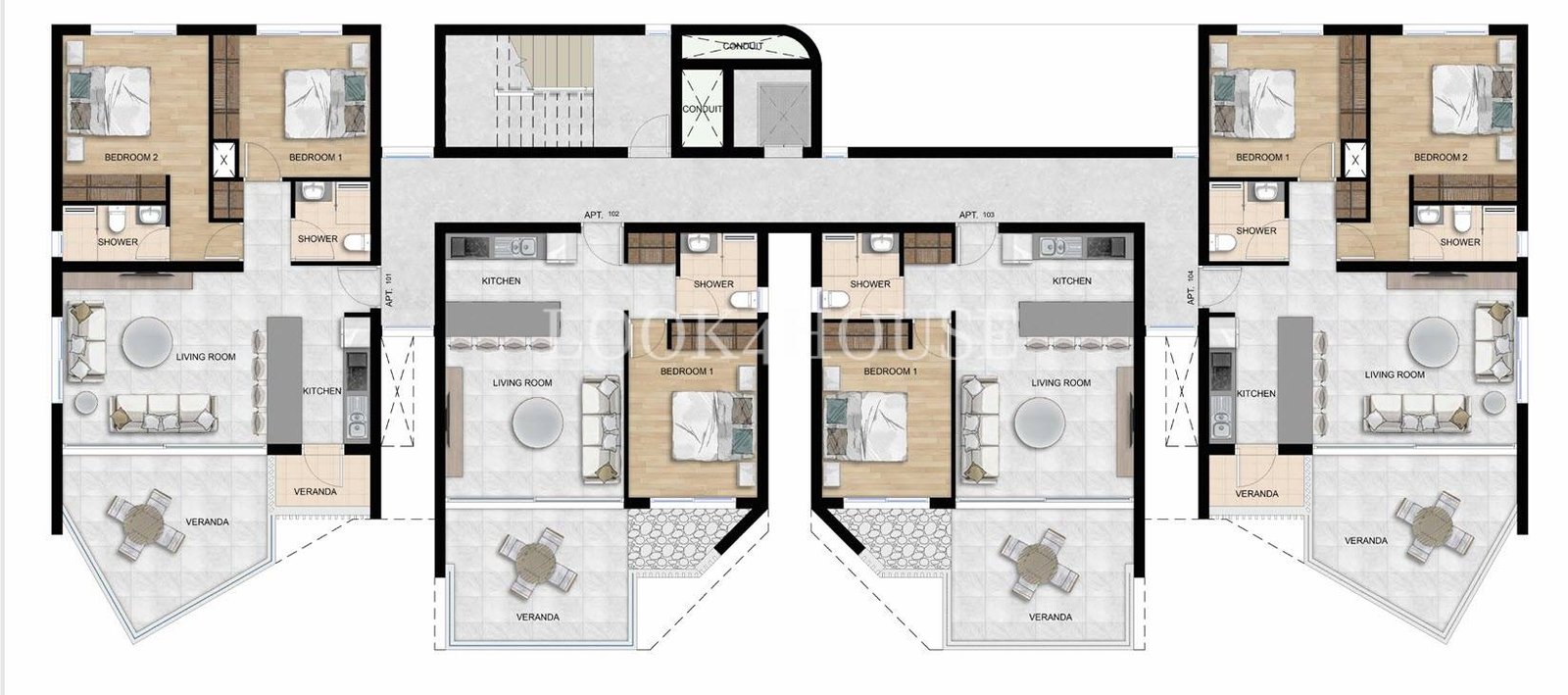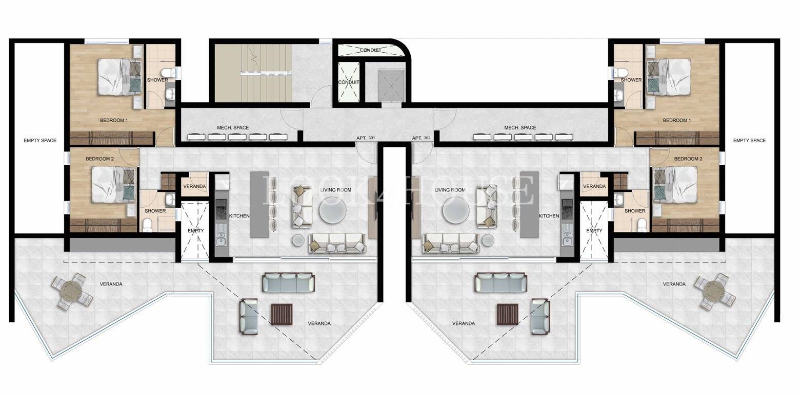 🔹 2 Bedrooms – 3rd Floor Penthouse (Large Verandas)