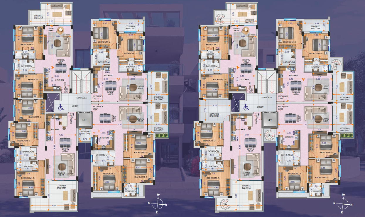 Apartment Bedrooms Bathrooms Total Area Covered Area Covered Balcony Roof Garden Storage Parking