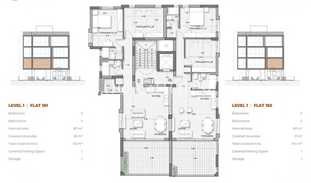 The apartment consists of 2-bedrooms, 2-bathrooms, 87 m² internal area, plus 26 m² of covered verandas – Total Covered Area of 113 m².