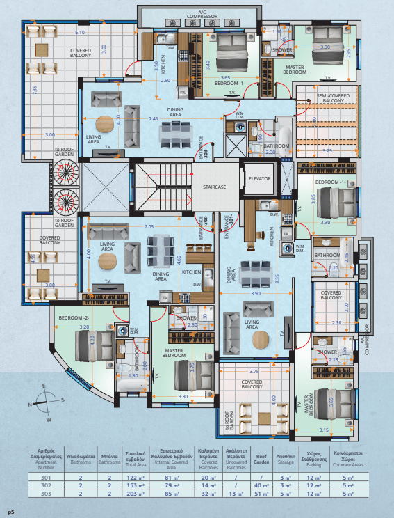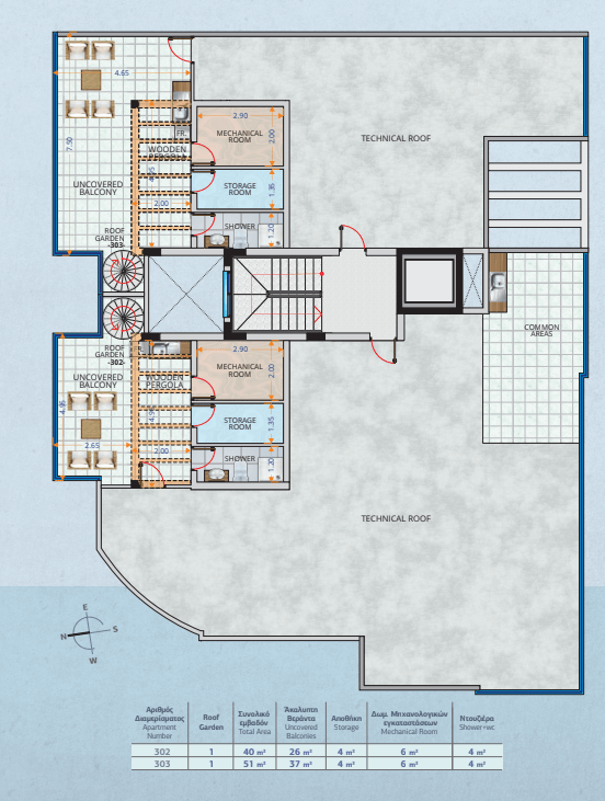| Flat No. | Roof Garden | Storage (sq.m.) | WC / Shower (sq.m.) |