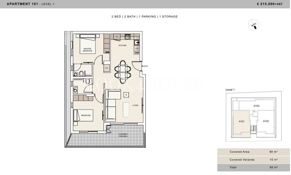 • A101 – 2BR | 95 m² (80 + 15) – €215.000 + ΦΠΑ