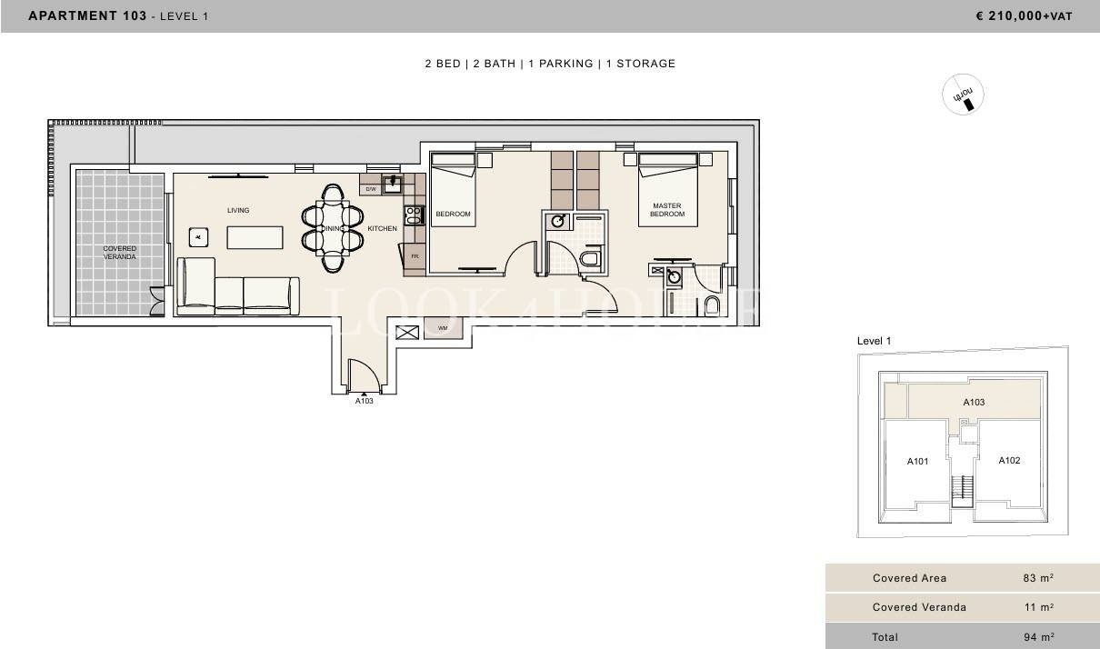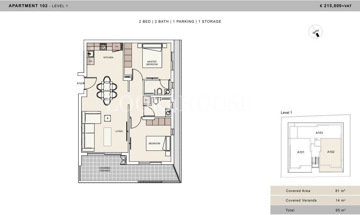 • A102 – 2BR | 95 m² (81 + 14) – €215.000 + ΦΠΑ