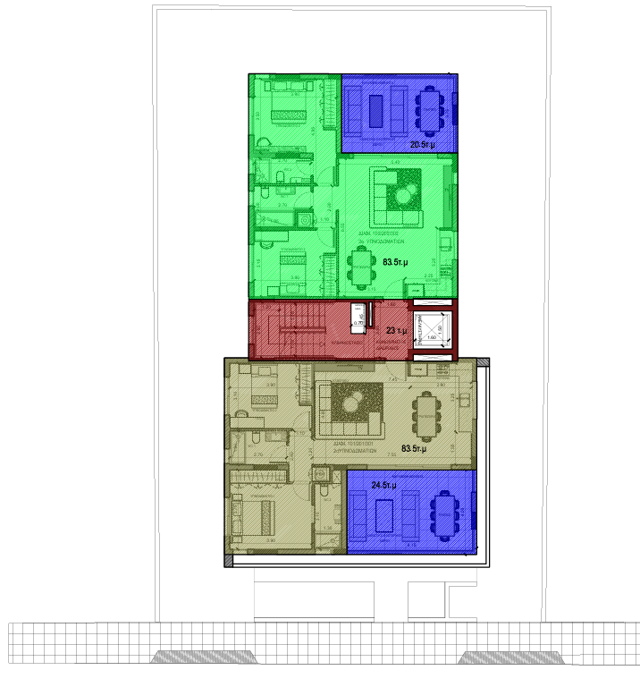 Τα διαμεÏίσματα του 3ου οÏόφου είναι ÏετιÏέ και διαθέτουν ιδιωτικό roof garden.
