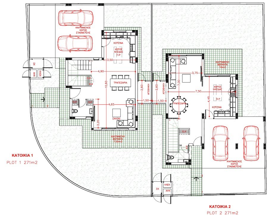 • Οικόπεδο: 542 τ.μ. (2 τεμάχια των 271 τ.μ.)