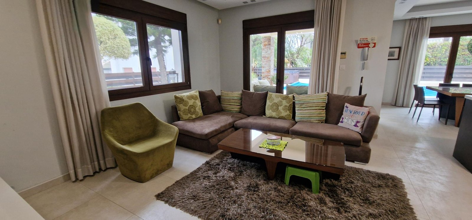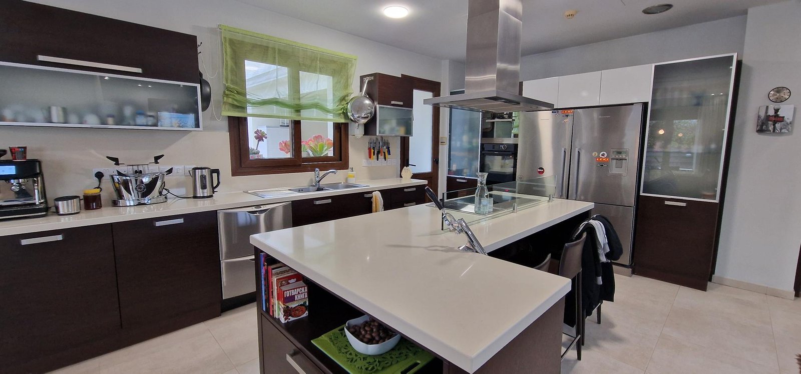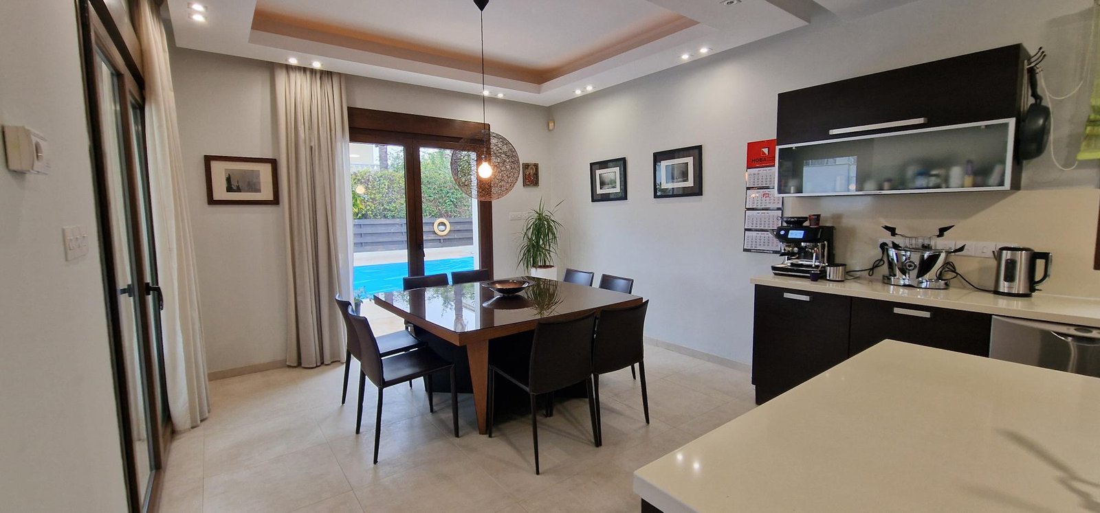 • Large, fully equipped kitchen with direct access to both the garage and pool area