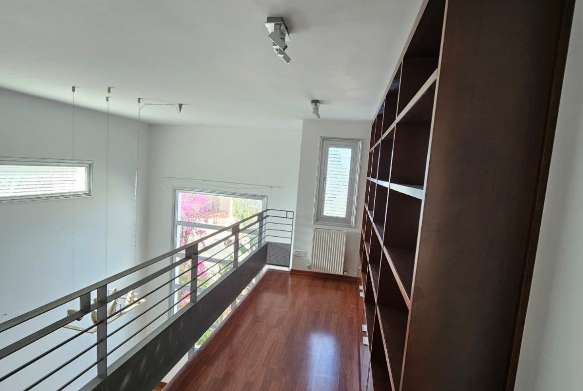 This spacious and well-maintained 4-bedroom house with an additional office is located in the serene area of Psimolofou, next to a pedestrian walkway. Built in 2004, it sits on a 671m² plot and offers 373m² of covered areas, plus 15m² of covered verandas, providing ample space for comfortable living.