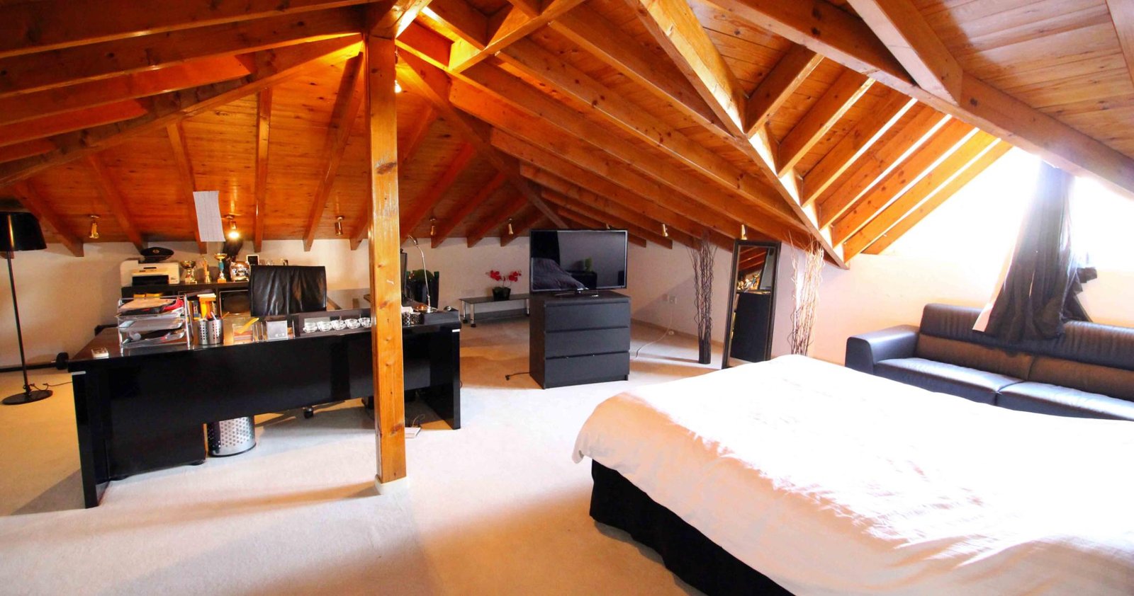 A vast open-plan studio with its own kitchenette and bathroom provides a versatile space—ideal for guests, work, or leisure.