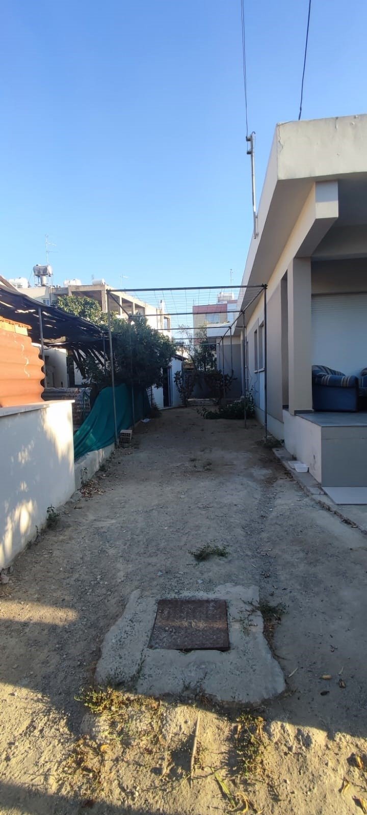 A ground-floor house with a private yard and additional storage rooms, situated in a residential area of Nicosia. The property was built in 1968 and is in good condition, offering functional spaces and development potential.