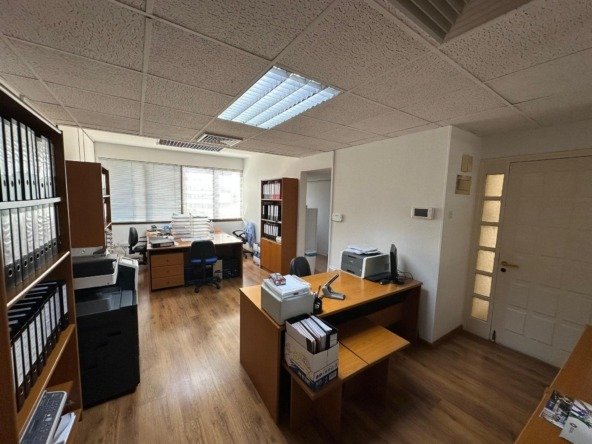 For rent space 150 sq. meters with tile floor, alarm system air-conditioning and Cat-6 computer wiring. Partly partitioned in three large offices, a kitchenette, storage and toilets. There are two covered parking spaces and an additional storage in the basement.