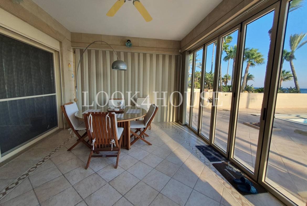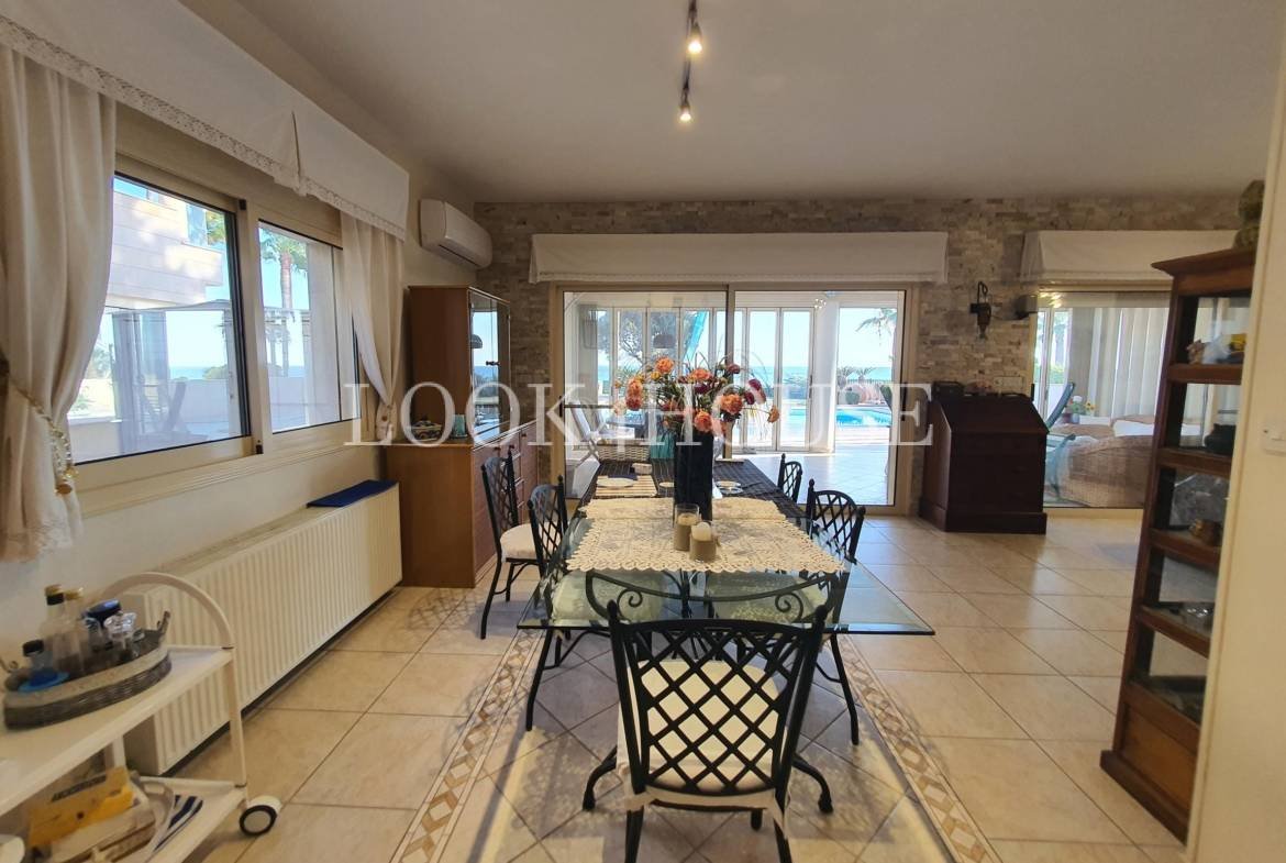 Nestled just steps away from the sea, this stunning residence offers the perfect blend of elegance, comfort, and coastal charm. Set on an expansive 800m² plot with a beautifully landscaped garden, this home is designed for both relaxation and entertaining. The covered area is 220m2 plus a beautiful sunroom of about 40m2 !
