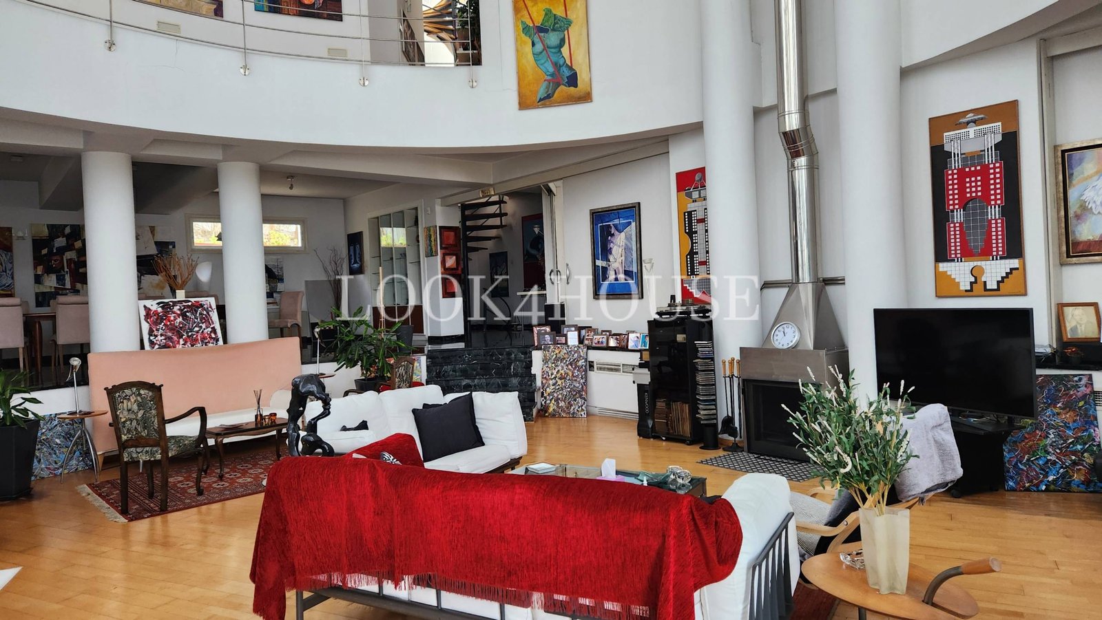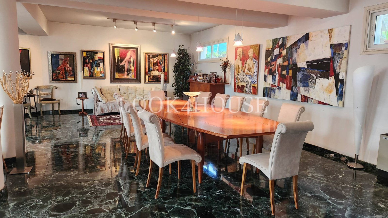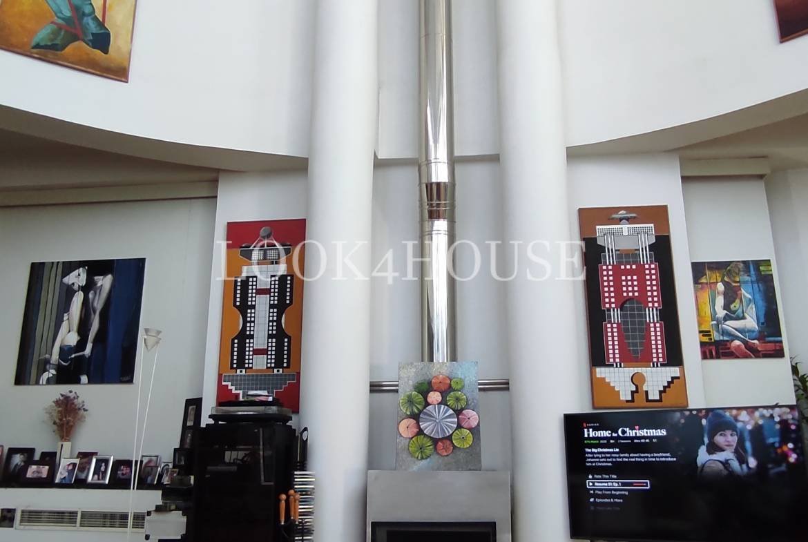 The main entrance opens into a magnificent circular living area featuring high ceilings and ample natural light. This impressive space flows into an elegant dining area and a fully equipped, well-designed kitchen.