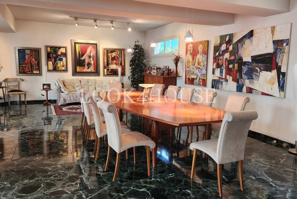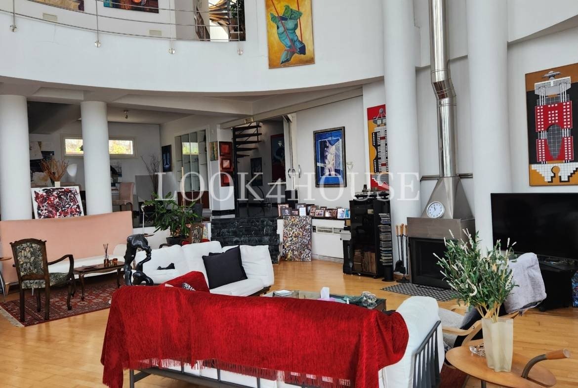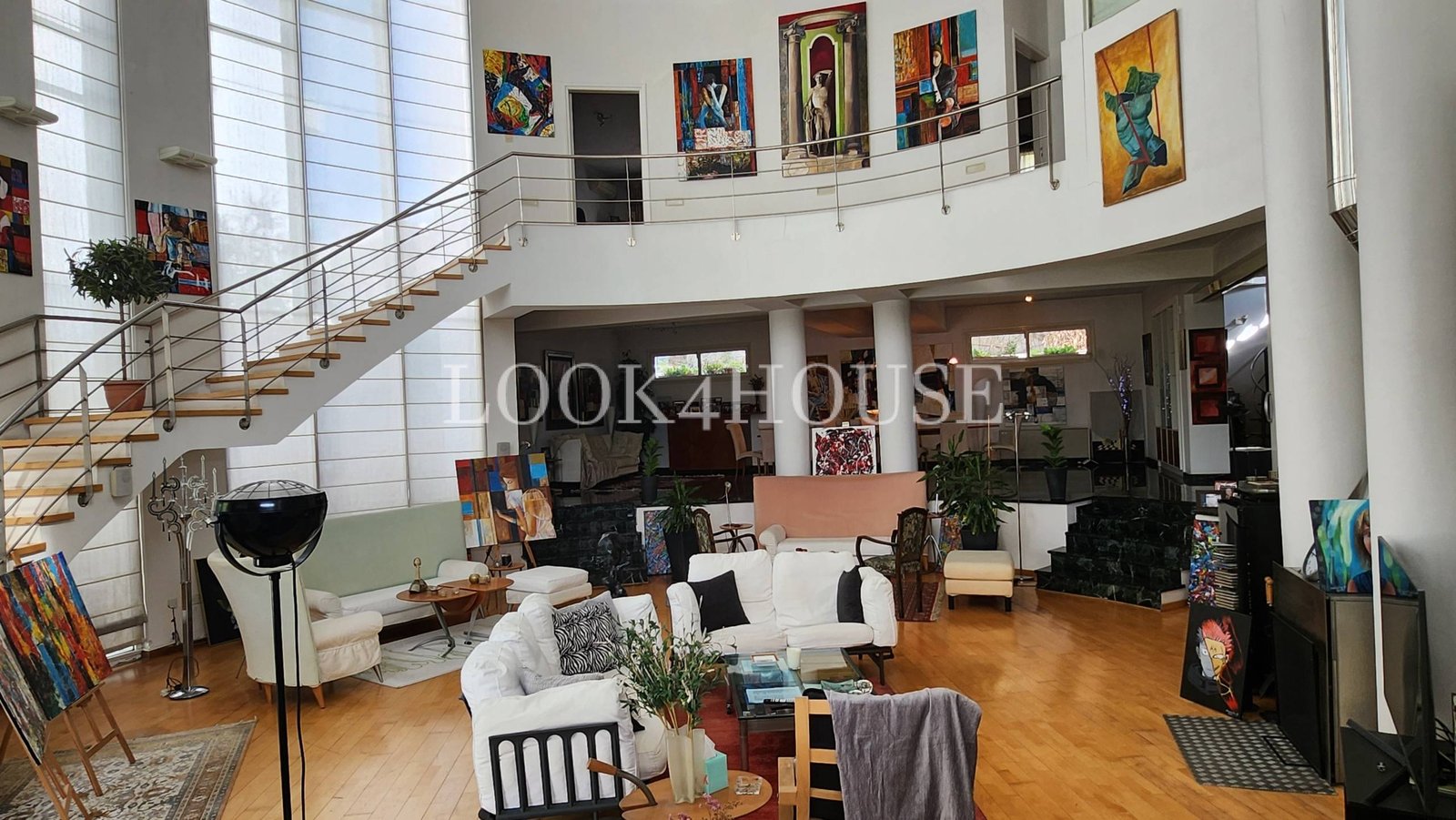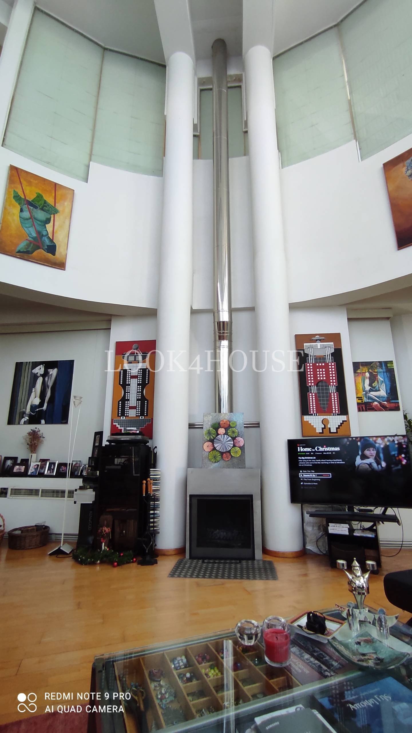 The main entrance opens into a magnificent circular living area featuring high ceilings and ample natural light. This impressive space flows into an elegant dining area and a fully equipped, well-designed kitchen.